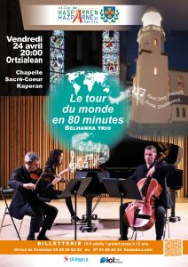 A l’occasion de la troisième édition de Kaperaldi, venez passer un bon moment avec le concert du trio Belharra à la chapelle du Sacré Coeur – vendredi 24 avril à 20h