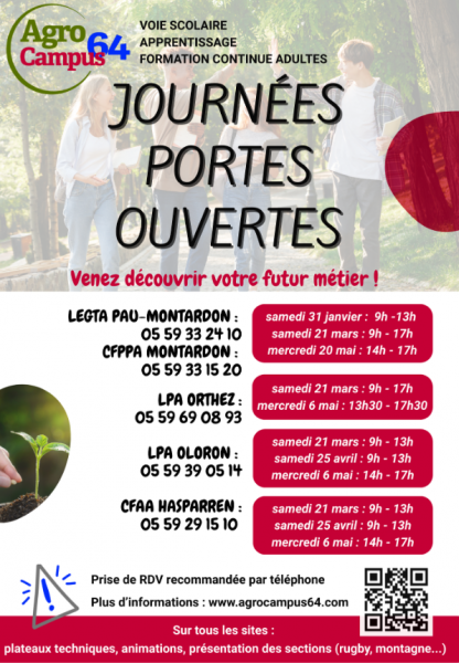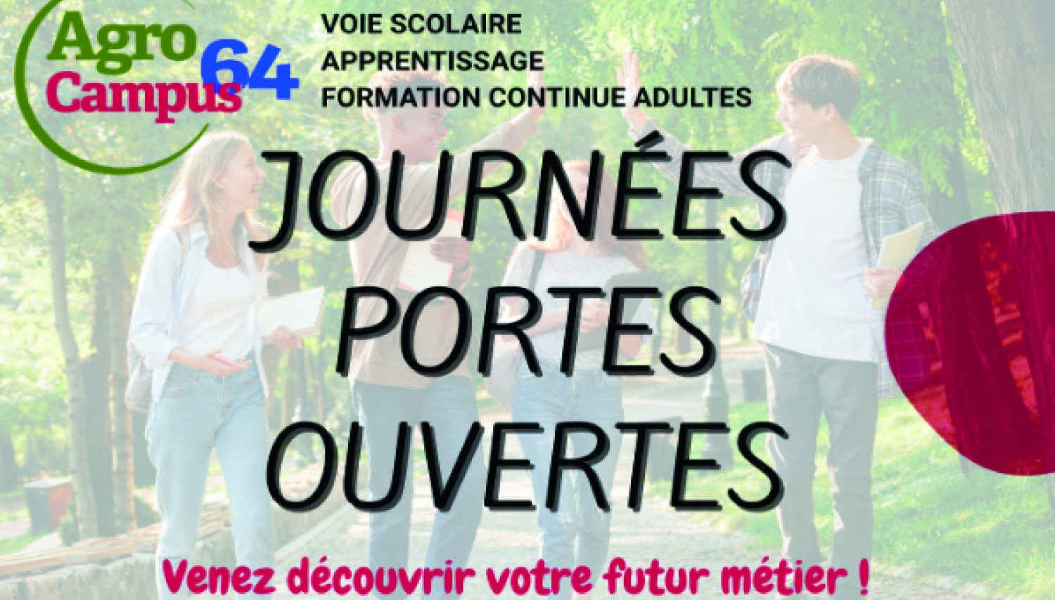 Le samedi 21 mars, de 9h à 13h, venez découvrir les formations de l’Agrocampus 64 lors de ses Journées Portes Ouvertes à Hasparren.