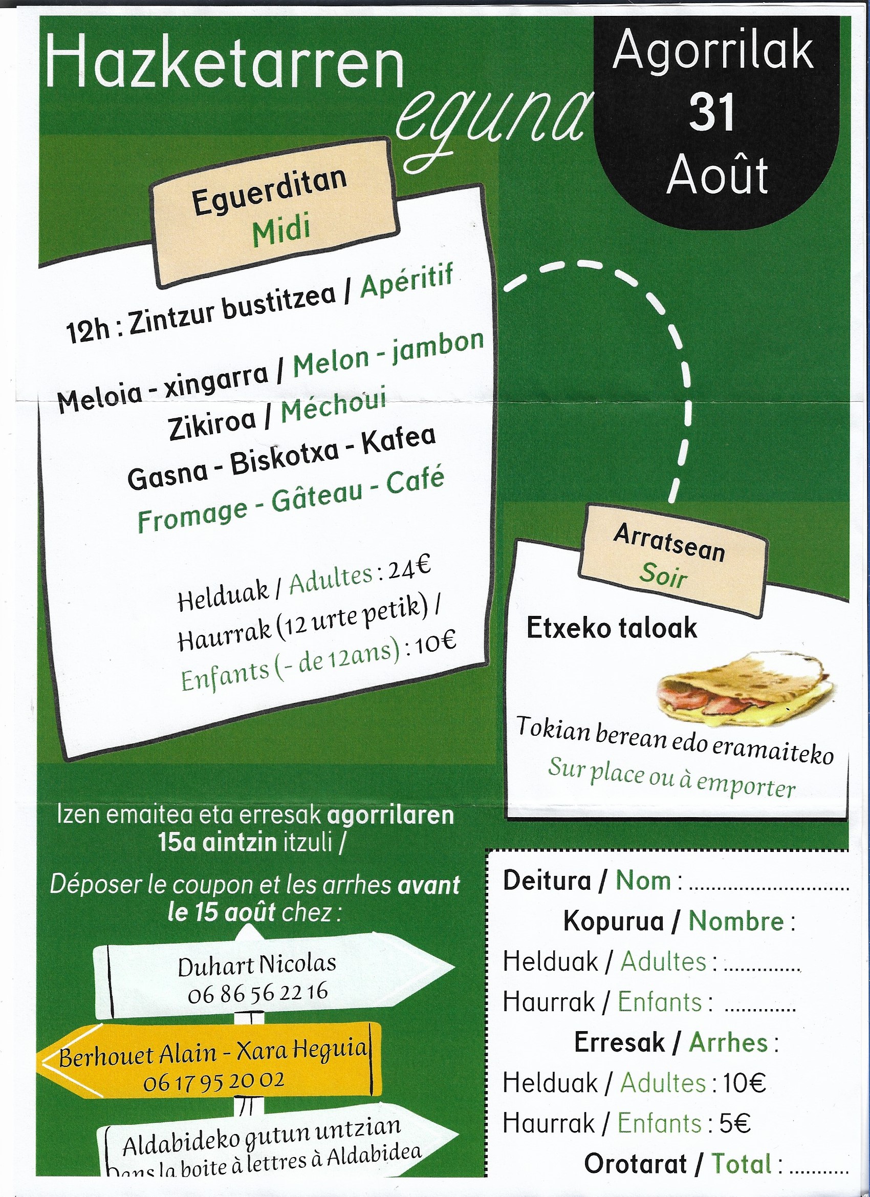 Repas du quartier Hazketa ce samedi 31 août à partir de midi ! N’oubliez pas de déposer le coupon avant le 15 août !