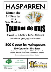 Dimanche 01 février, tournoi de mus organisé par la Batterie-fanfare Haitzmendi à la salle Mendeala