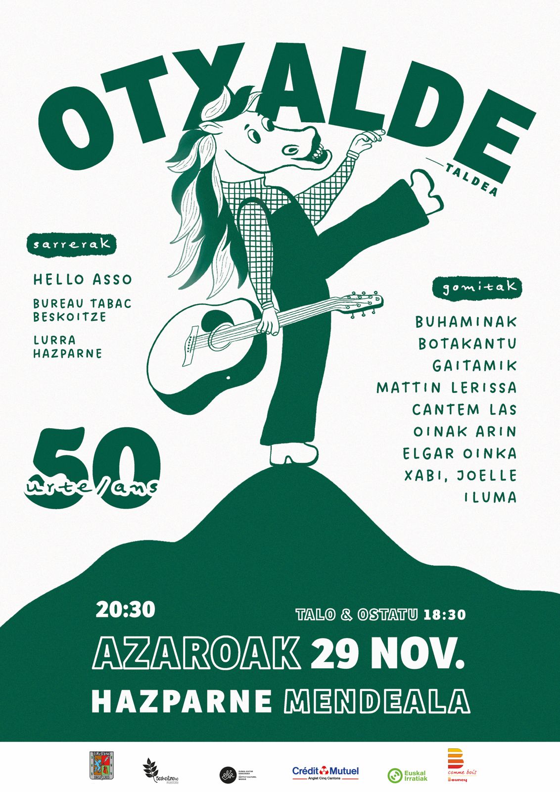 Pour les 50 ans du groupe Otxalde, 9 groupes amis vont se produire à Mendeala le 29 novembre à partir de 20h30.