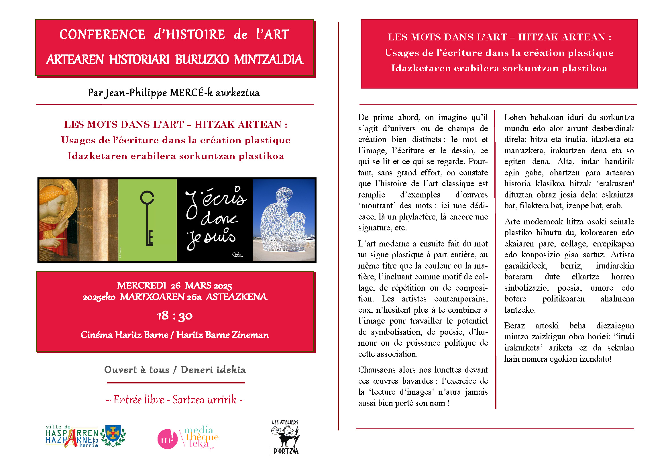 Mercredi 26 mars au cinéma Haritz Barne à partir de 18h30 : conférence d’histoire de l’art par Jean-Philippe Mercé