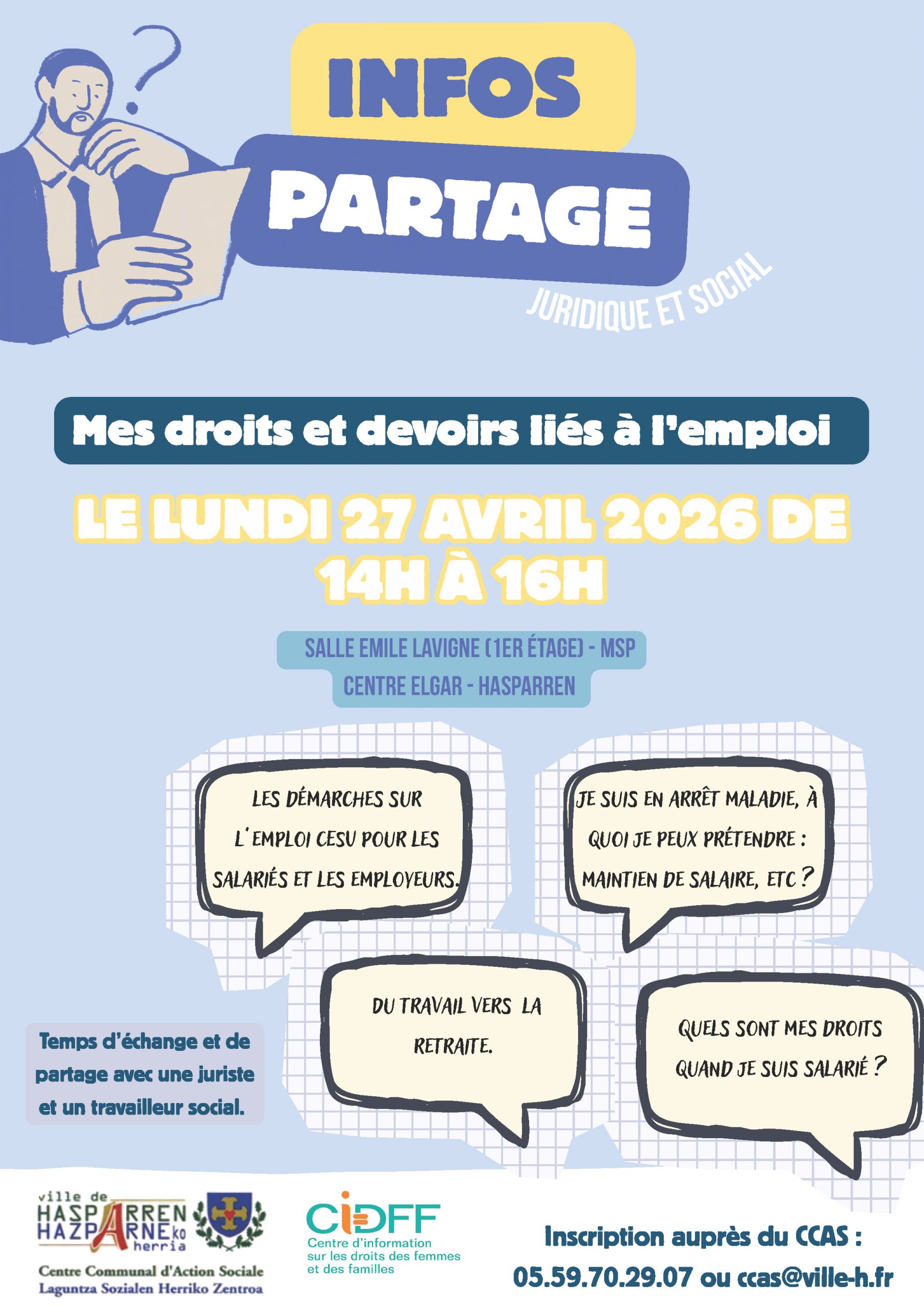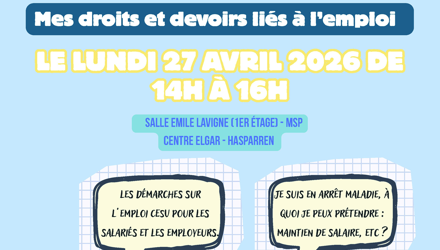 Le Centre Communal d’Action Sociale (CCAS) d’Hasparren organise un temps d’information et d’échange ouvert à tous autour des droits et devoirs liés à l’emploi.
