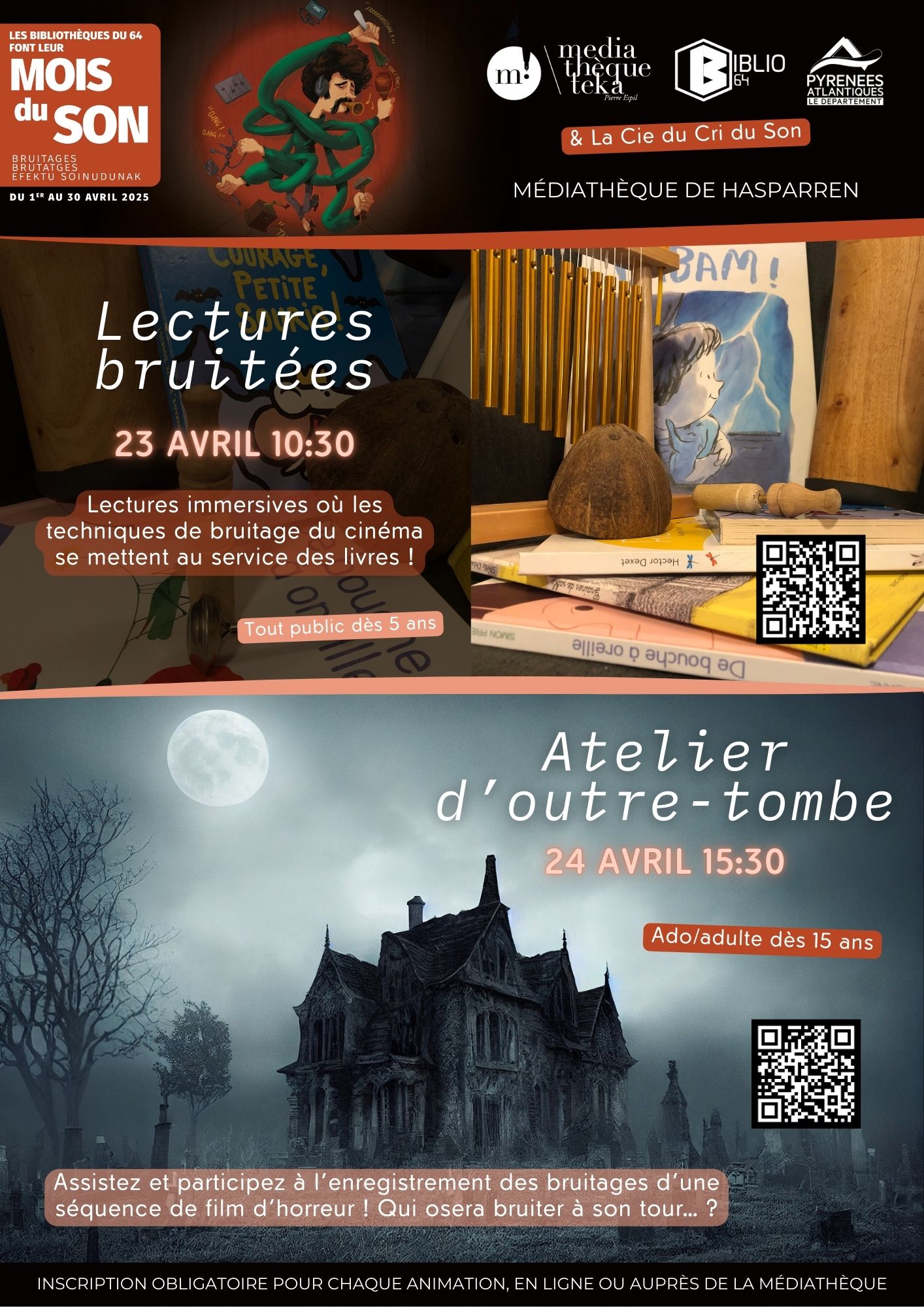 Jeudi 24 avril à 15h30, venez assister et participer à l’enregistrement des bruitages d’une séquence de film d’horreur ! Une performance de bruitage insolite qui vous dévoilera tous les secrets de fabrication des sons des monstres ! Qui osera bruiter à son tour… ?