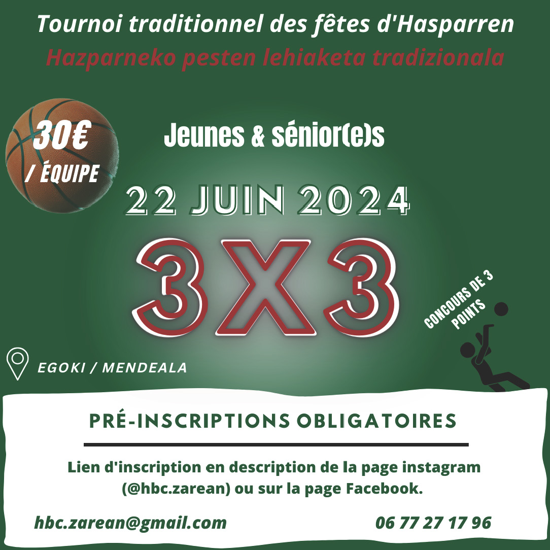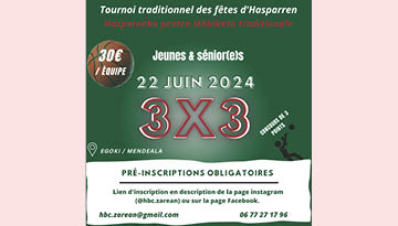 HBC Zarean organise comme chaque année au moment des fêtes d’Hasparren, son grand tournoi 3×3 dans les salles de Mendeala et Egoki.
