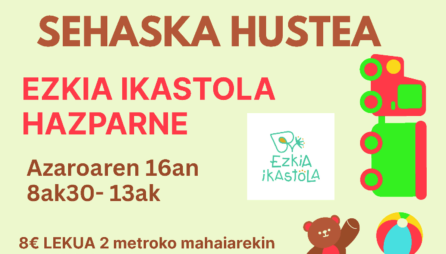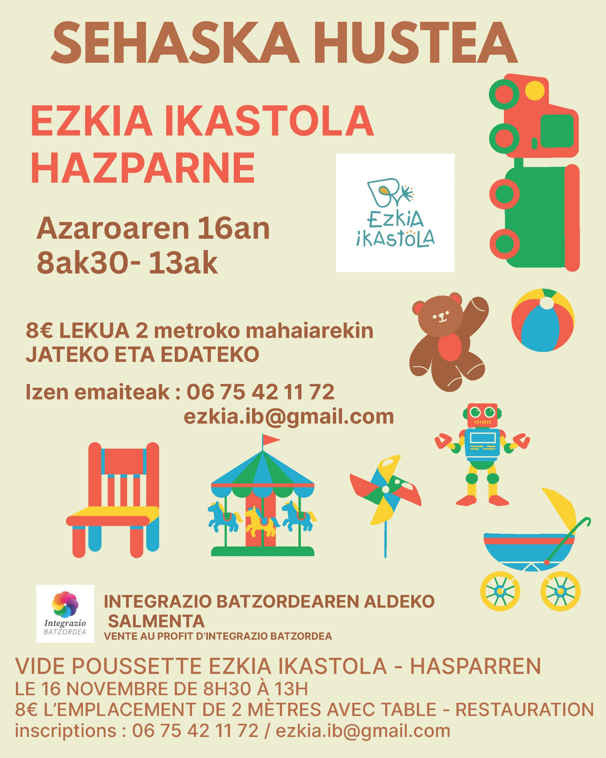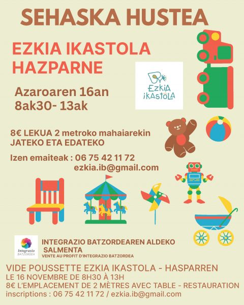 Dimanche 16 novembre, de 8h30 à 13h, vide poussette à Ezkia Ikastola.